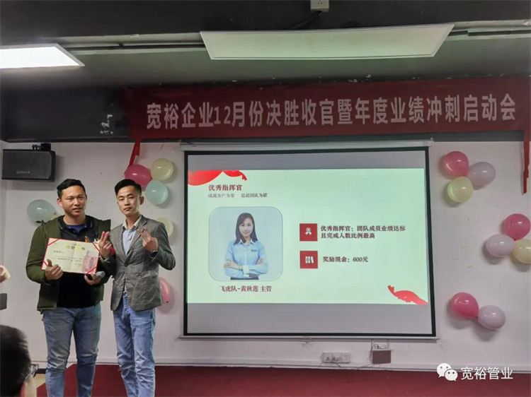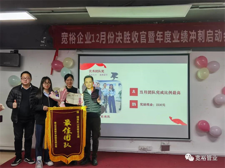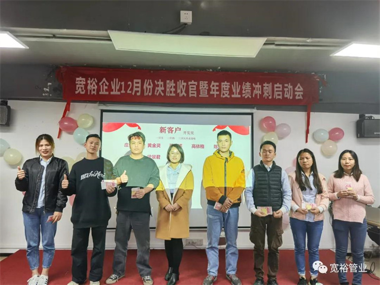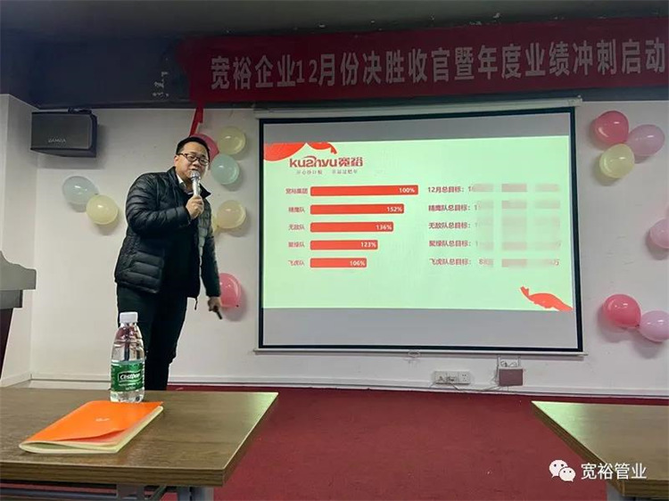 1月6日晚上,寬裕企業(yè)“快樂(lè)掙口糧,幸福過(guò)肥年”之12月收官之戰(zhàn)總結(jié)及頒獎(jiǎng)典禮在企業(yè)總部三樓會(huì)議室隆重舉行!經(jīng)過(guò)了一個(gè)月的奮戰(zhàn),經(jīng)過(guò)一次啟動(dòng)及二次啟動(dòng)的疊加推進(jìn),每天早開(kāi)會(huì)、晚總結(jié),一個(gè)一個(gè)看似微不足道的動(dòng)作,全都為了指向最終目標(biāo)的勝利實(shí)現(xiàn)!寬裕的全體戰(zhàn)士們最終以100%完成沖刺任務(wù)的彪炳戰(zhàn)績(jī)?yōu)?020年畫(huà)上了圓滿的句號(hào)!在此,小編僅代表寬裕企業(yè)感謝所有英勇奮戰(zhàn)的戰(zhàn)士們!感謝臺(tái)前幕后所有的伙伴們共同推動(dòng)了本次收官之戰(zhàn)的勝利!1月6日,我們勝利會(huì)師啦!